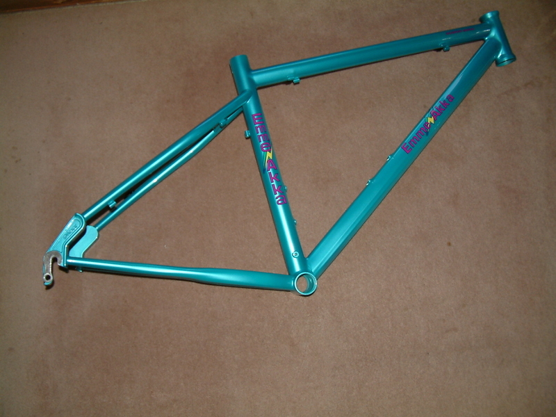 2009-10-16 塗装後のMTBフレーム 無題 #自転車 塗装から帰ってきました。 1920gになっていました。 と言っても塗装後にブレーキアウターガイドを4個つけましたので、この分も入ってしまいました。